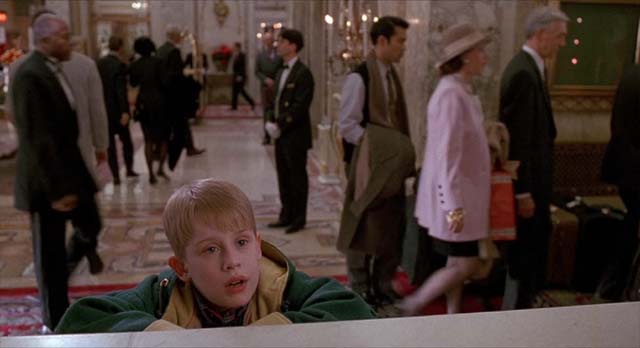 Many of the story points are similar to Home Alone, though the violence is a lot more unrealistic and extreme. Kevin is left behind again, this time getting lost in the airport. The plot for this movie is a redux of the first movie and it works. Kevin gets to explore New York and outwit the concierge where he manages to book a suite.